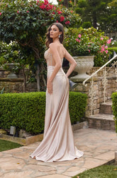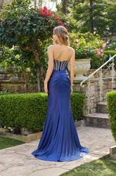 Corset hot stone satin gown with split.