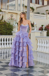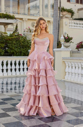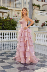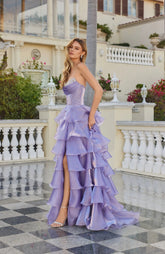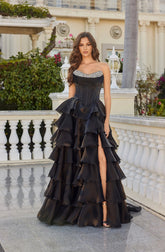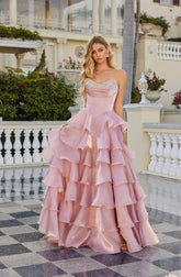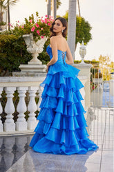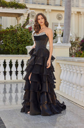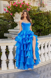 Moonlight Organza Strapless Layered Gown with Tiered Ruffle Dress. Perfect for any formal function.